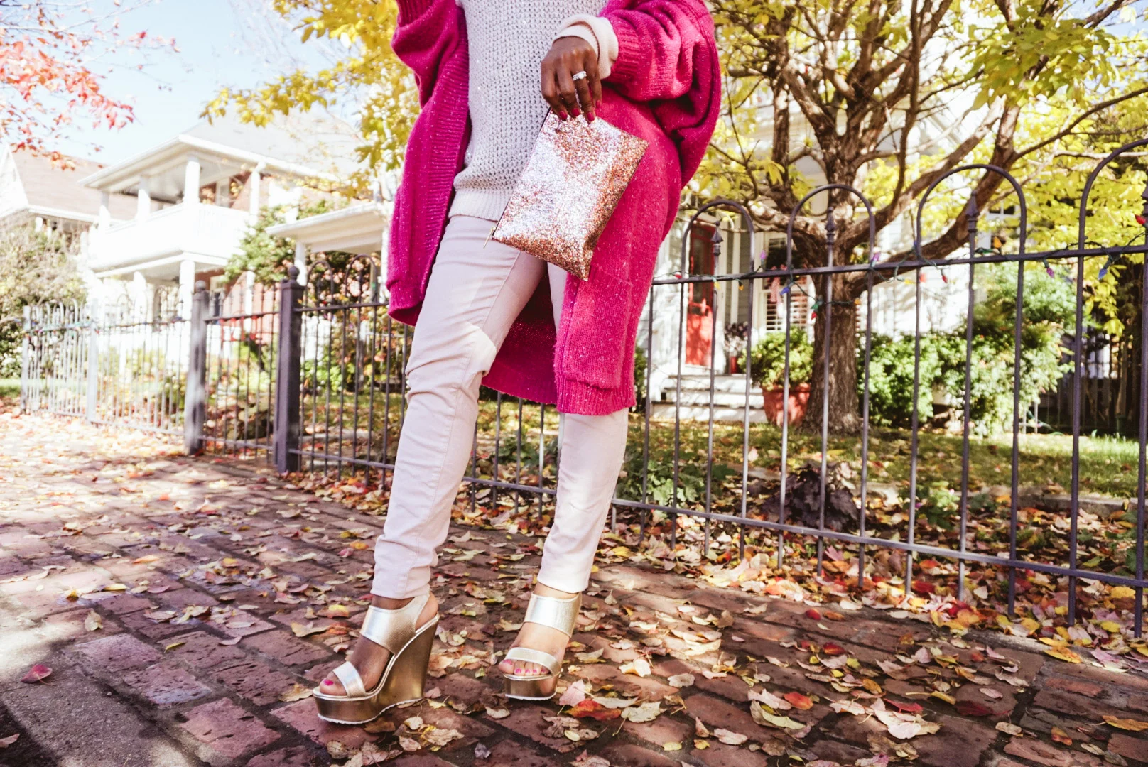 During the holidays you can have so much fun styling your look. We wanted to show you how you can break the rules of styling and just simply be glam-tacky. We layered sweaters, added several metallics, and sparkles to give this look a very magical holiday feel. With what we call sparkling metallics you will definitely bring cheer to the next holiday party you attend!
